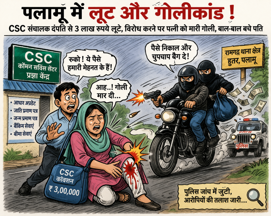 पलामू में दिनदहाड़े लूट: CSC संचालिका को मारी गोली, 3 लाख लेकर फरार बदमाश