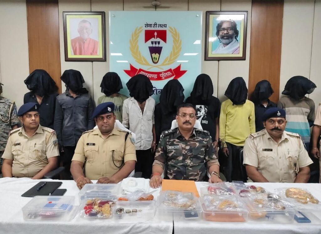 हजारीबाग: पुलिस ने मुफ्फसिल थाना क्षेत्र के भवनवे गांव में हुई 80 लाख की डकैती का पर्दाफाश कर दिया है। 13 सितंबर की रात आनंदिता मलिक के घर पर आठ डकैतों ने धावा बोलकर गहने और नकदी लूट लिए थे।गुप्त सूचना पर छापेमारीएसपी अंजनी अंजन ने बताया कि 25 सितंबर की रात गुप्त सूचना के आधार पर हत्यारी जंगल में एसआईटी ने छापेमारी की। इस दौरान मास्टरमाइंड रणबीर कुमार सिंह उर्फ छोटू को चार साथियों समेत पकड़ा गया। इनके पास से लूटे गए जेवरात और एक पिस्तौल बरामद हुई।