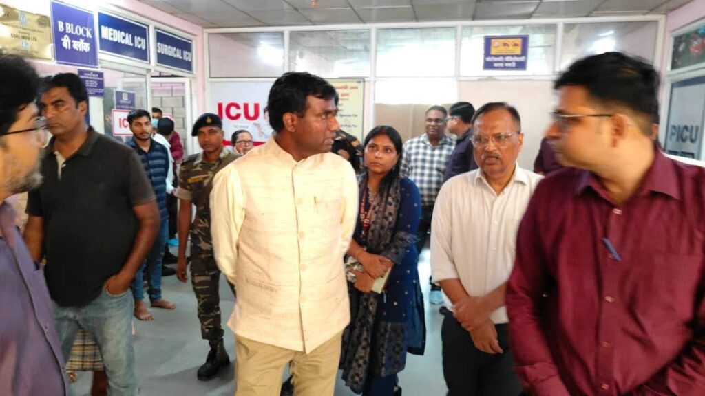 रांची : उपायुक्त सह जिला दंडाधिकारी, राँची मंजूनाथ भजन्त्री ने आज सदर अस्पताल का औचक निरीक्षण किया। इस दौरान सिविल सर्जन डॉ. प्रभात कुमार, जिला जन संपर्क पदाधिकारी उर्वशी पाण्डेय, डॉ. बिमलेश कुमार और अन्य चिकित्सा पदाधिकारी उपस्थित थे। निरीक्षण का मुख्य उद्देश्य अस्पताल की व्यवस्थाओं, चिकित्सा सुविधाओं और मरीजों को दी जा रही सेवाओं की गुणवत्ता का आकलन करना था।